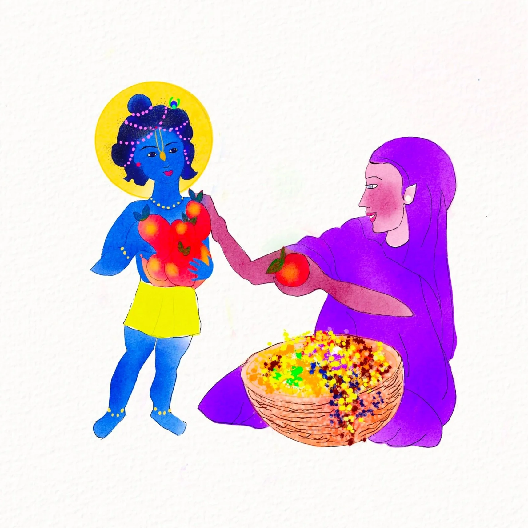 Krishna Charms a Fruit Seller