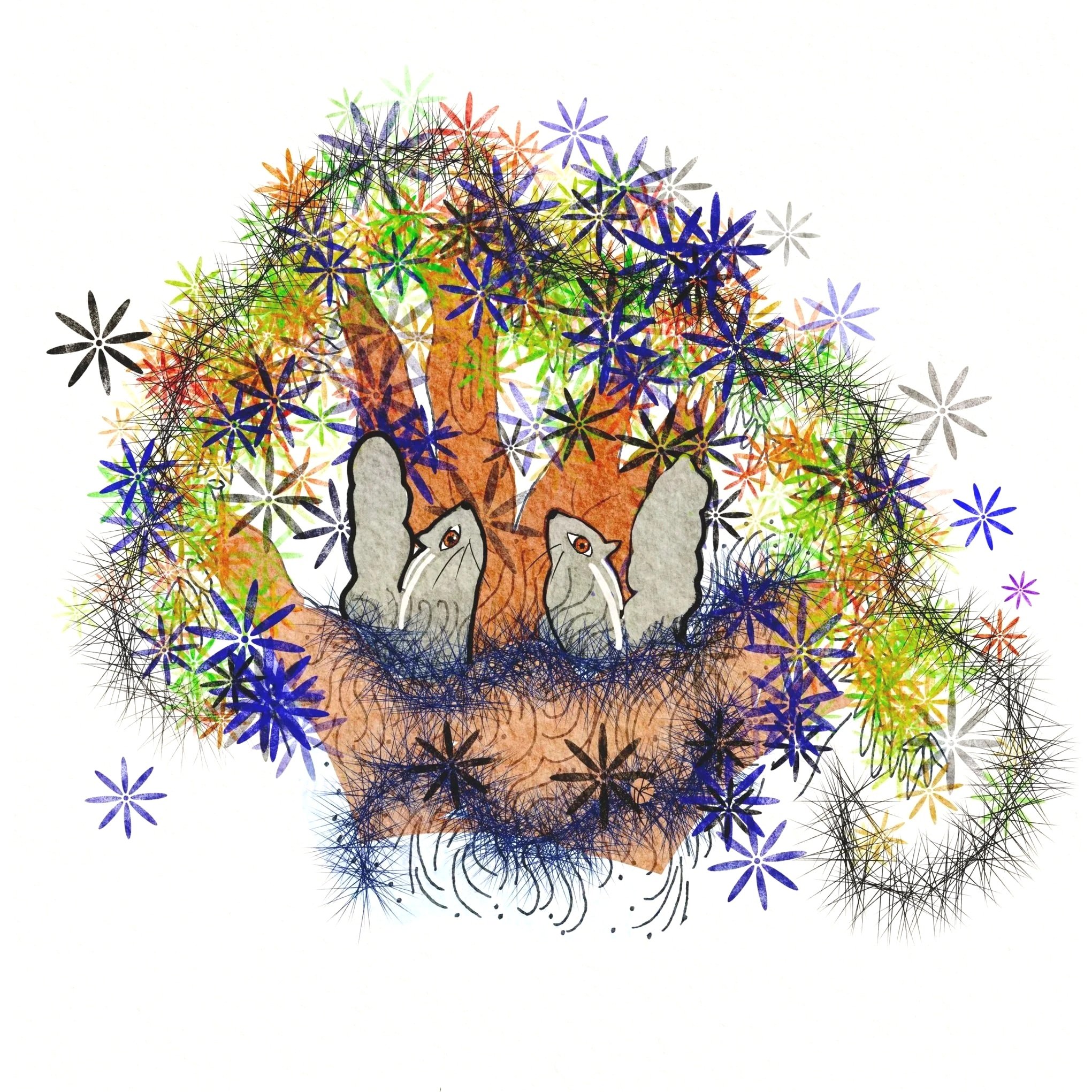 Early on Diwali morning, Chinta found a half-full box of sweets decorated with lovely shining tinsel. She dragged the box home, decorated her nest and set the sweets on three leaf plates. Chinta and her twins sang prayers to Lord Rama and enjoyed a fine Diwali breakfast.